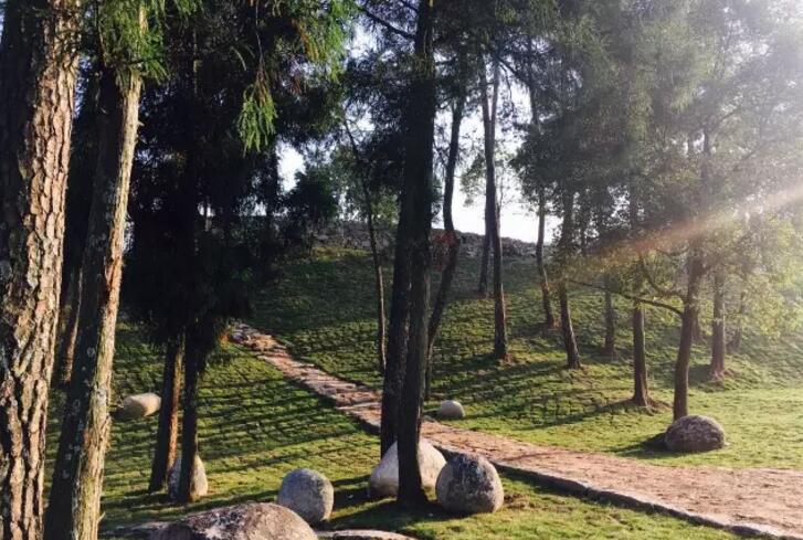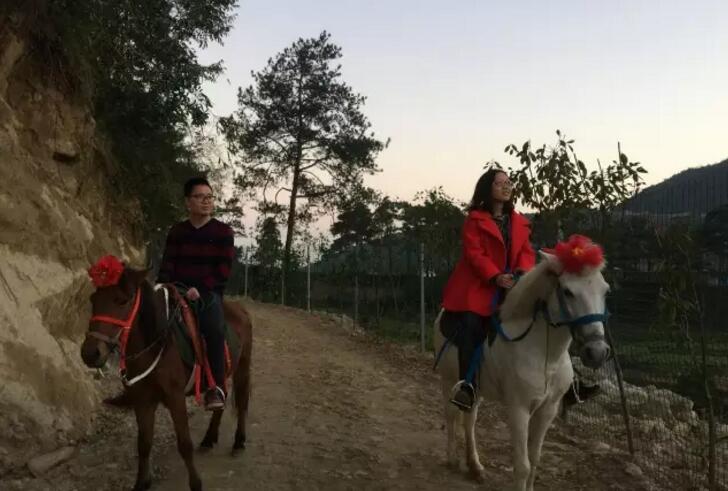 海拔400米左右高的丁公园村北面有一宽4米,长800米的林荫马道环绕官庄岭而建,马道外侧冬青林立,筑起避风林,沿路花草遍地,可“走马观花”,“跑马溜溜的山上,有位好姑娘”恰好符合这一意境!