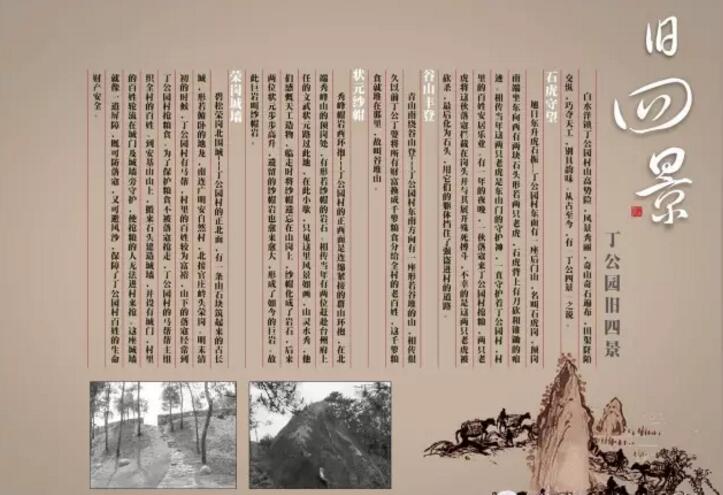 丁公园村的正北面,有一条由石块筑起来的古长城,形若俯卧的地龙,南连广明安自然村,北接官庄岭头荣岗。明末清初的时候,丁公园村有马帮,村里的百姓较为富裕,山下的落寇经常到丁公园村抢粮食。为了保护粮食不被落寇抢走,丁公园村的马帮帮主组织全村的百姓、到安基山山上,搬来石头建造城墙,并设有城门,村里的百姓轮流在城门及城墙旁守护,使抢粮的人无法进村来抢。这座城墙就像一道屏障,既可防落寇,又可避风沙,保障了丁公园村百姓的生命财产安全。