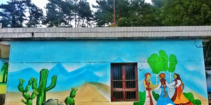 普普通通的农舍,因为和绘画艺术联姻,立即产生了颠覆性的视觉效果,使人仿佛走进了另一个全新的世界。看似随意有趣,走近了就会发觉其实画功都挺了不得。粉红、明黄、天蓝交织,缤纷了满山青绿。