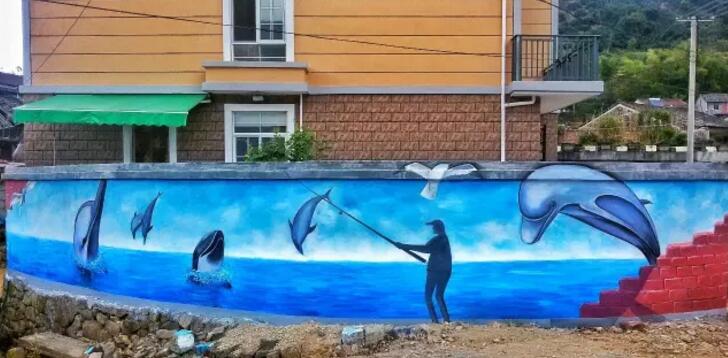 走进村子,就像进入了一个五彩缤纷的世界,有江南印象的水墨画,有色彩艳丽的活泼涂鸦,还有3D互动效果的立体墙面……移步换景,如同进入了一个五彩缤纷的世界。