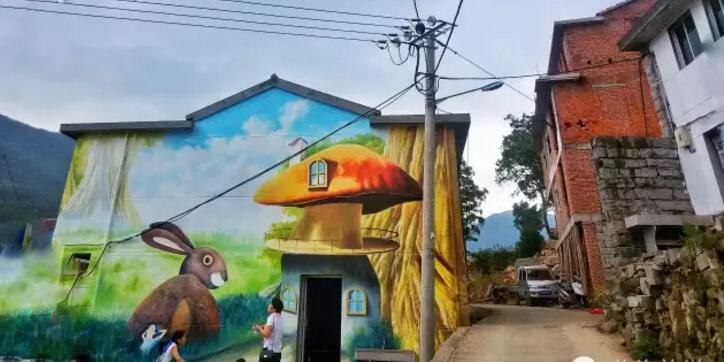 恐龙、喜洋洋、小黄人、白雪公主……一个个色彩缤纷、形态各异的卡通形象,以3D画的形式,“跳”上临海白水洋镇丁公园村农户的墙壁。这个“童话王国”一问世,一路人气飙升,很多人慕名而来。