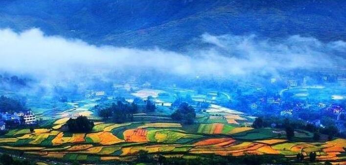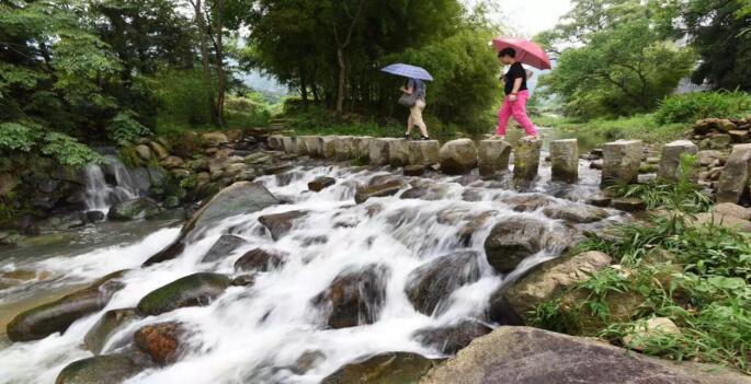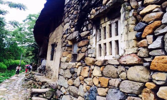登高俯瞰整个村庄宛如一条扬帆起航的大船。以溪为引,依山傍水,稳重扎实又不失清新灵动。一到秋天,层层梯田姜黄稻熟,雾聚于盆地上空,"暖暖远人村,依依墟里烟,狗吠深巷中,鸡鸣桑树颠。",犹如浸身人间桃园。村中一条宽约2米的青石古道沿河而上,是台州府至天台县“黄南古道”的必经交通要道,古道风貌犹存,是黄南古道上一处历史文化遗存。